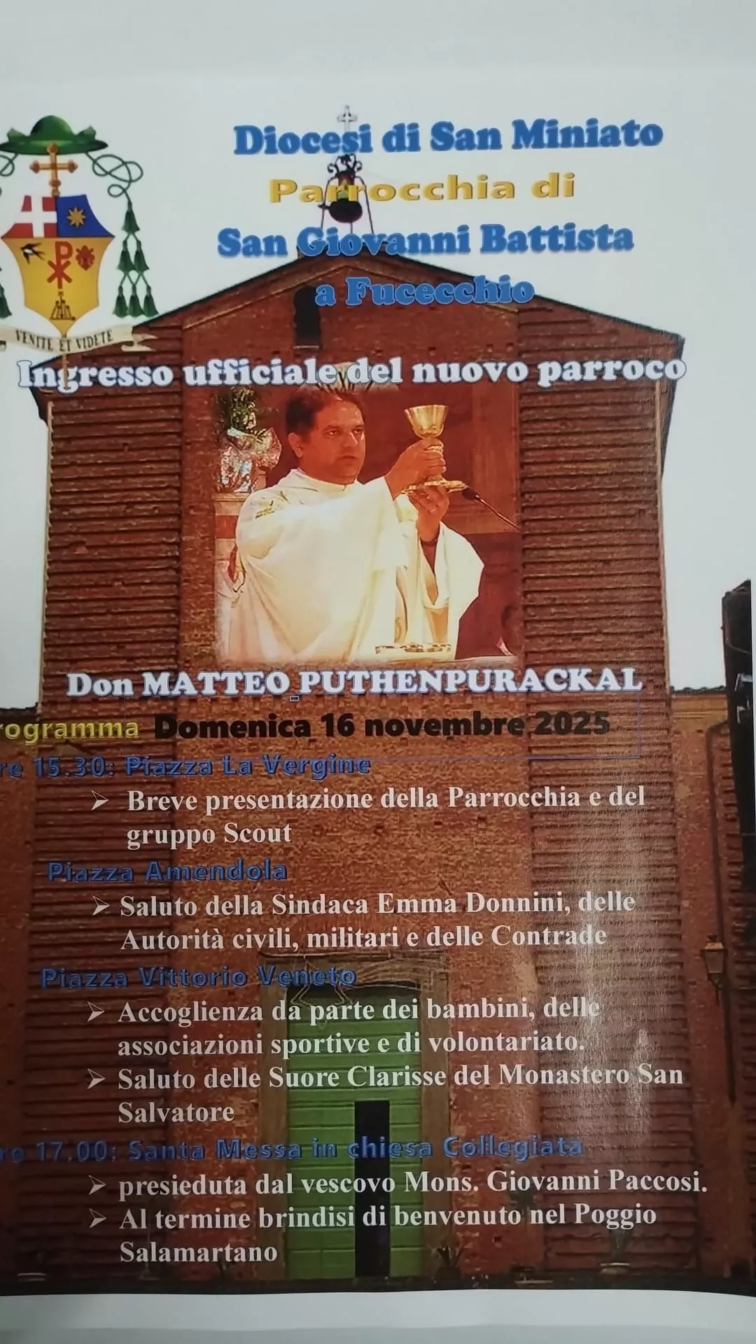 Fucecchio accoglie il nuovo parroco: domenica la festa per l’arrivo di Don Matteo Puthenpurackal