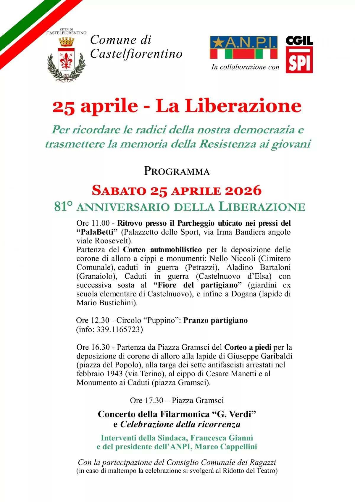 Castelfiorentino, tutti gli appuntamenti del 25 aprile