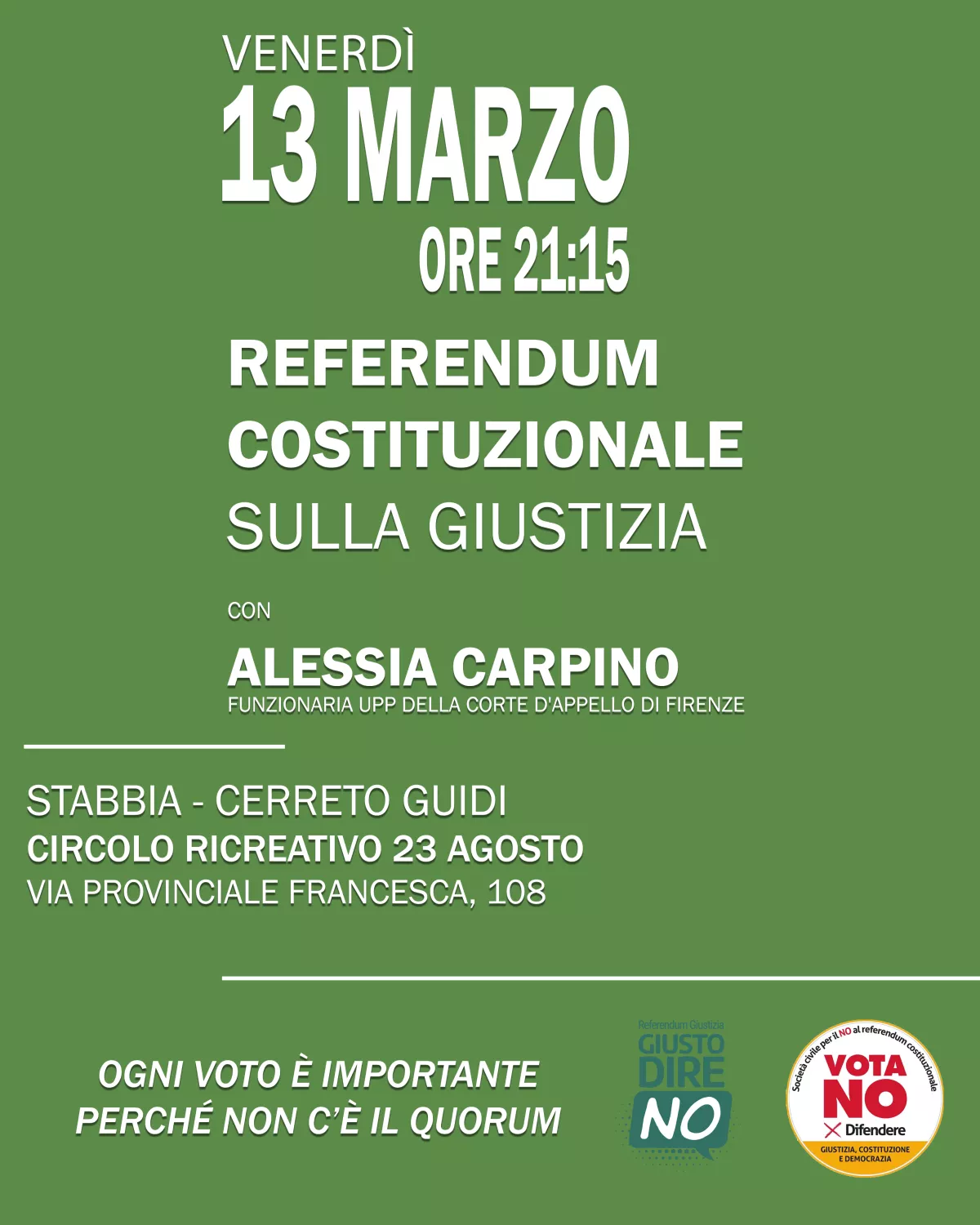 A Stabbia un incontro sulle ragioni del No al referendum con Alessia Carpino