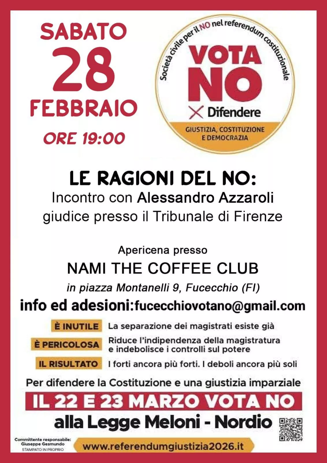 Il Comitato Fucecchio Società Civile per il no organizza un'iniziativa pubblica