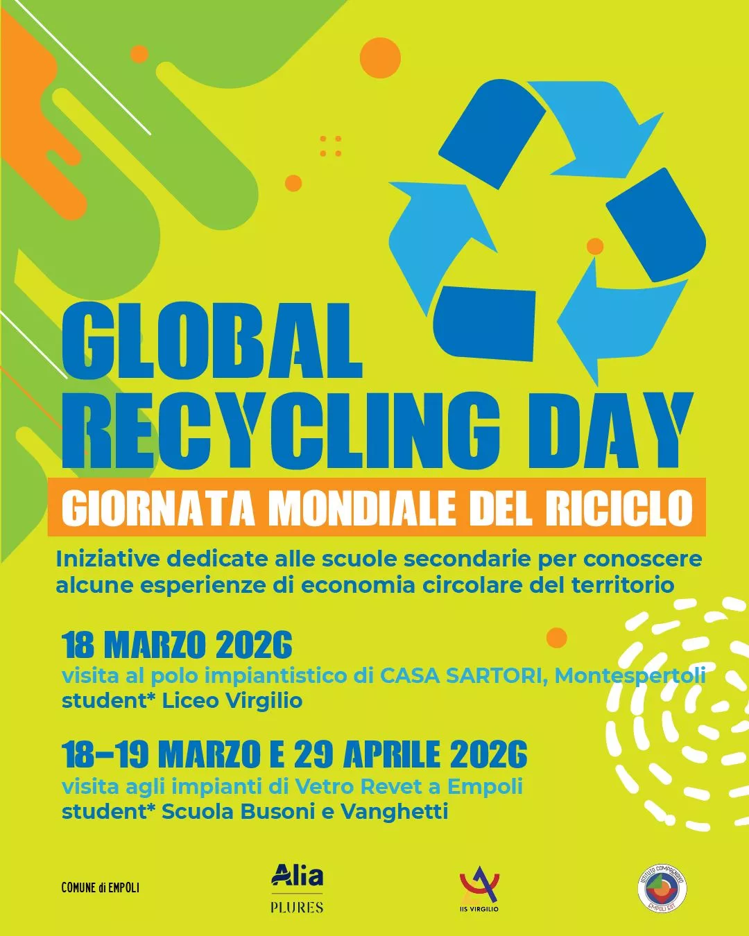 Educare le nuove generazioni al riciclo e all'economia circolare partendo da esempi concreti del territorio. È questo l'obiettivo delle iniziative organizzate a Empoli in occasione del Global Recycling Day, la Giornata mondiale del riciclo che si celebra il 18 marzo con l'intento di accrescere la consapevolezza dei cittadini sull'importanza di un uso più sostenibile delle risorse.