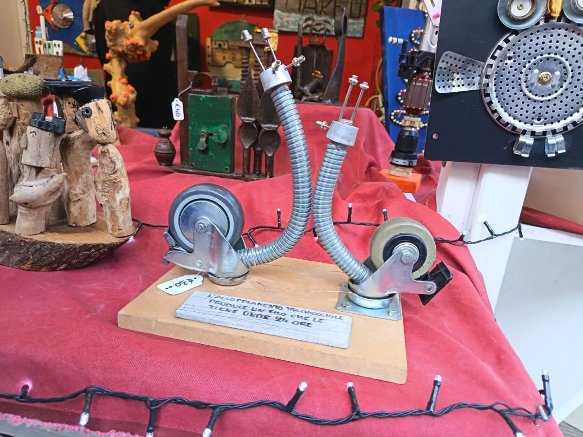 Walter Masoni e l'arte del recupero. Poco più in là, un'altra baita mette in scena una vera e propria galleria di sculture di materiale riciclato.Qui c'è Walter Masoni, volto storico del commercio empolese — per anni attivo nel settore degli articoli sportivi — che oggi ha trovato una seconda vita nella creatività manuale.