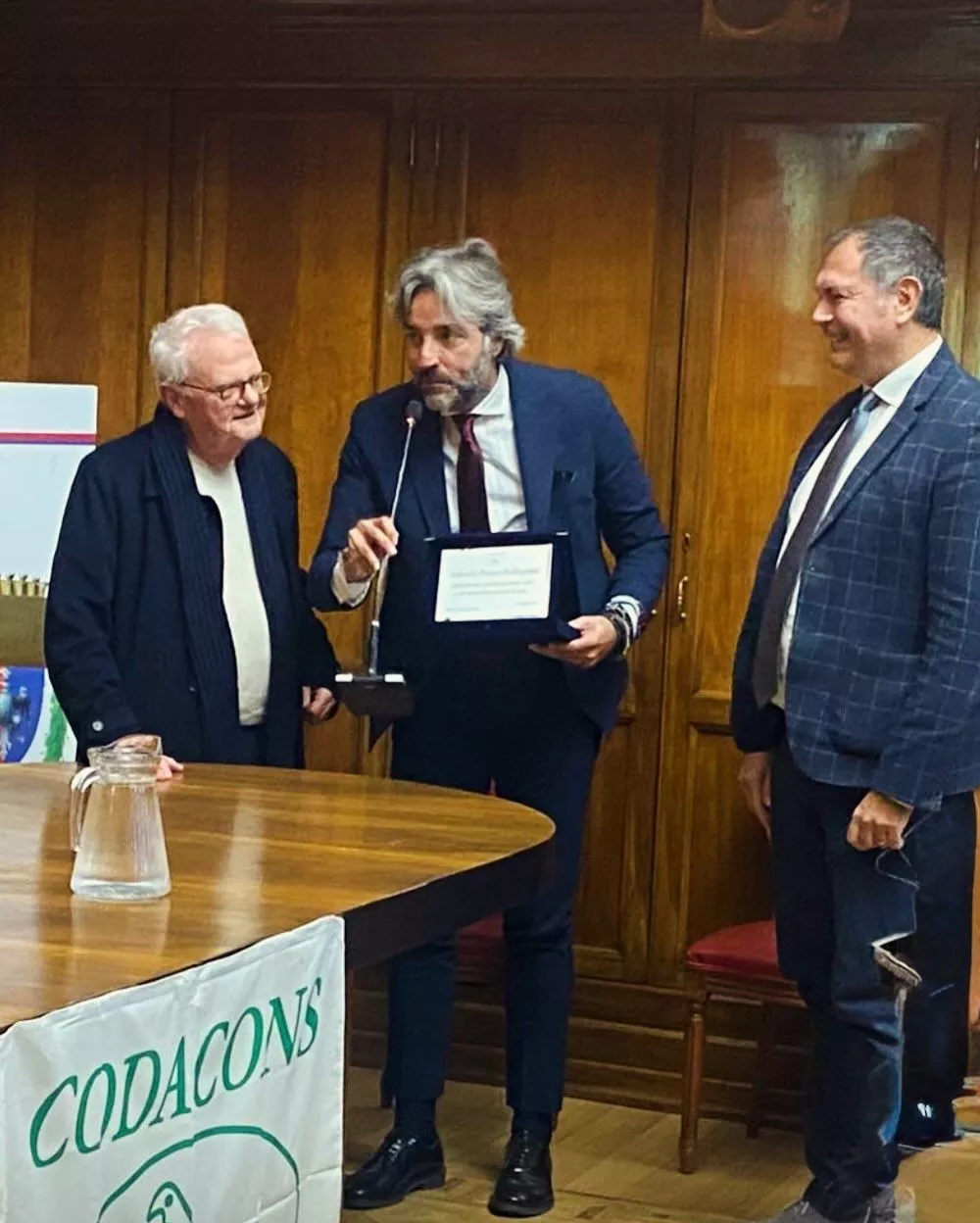 “A volte una foto racconta più di mille discorsi – scrive Ponzo Pellegrini –. Quella di oggi, scattata durante la consegna del riconoscimento, ne contiene almeno tre: lo sguardo attento di chi ti osserva, la provocazione intelligente di chi ti mette alla prova e la responsabilità di chi accoglie un premio sapendo che dovrà fare ancora di più”.