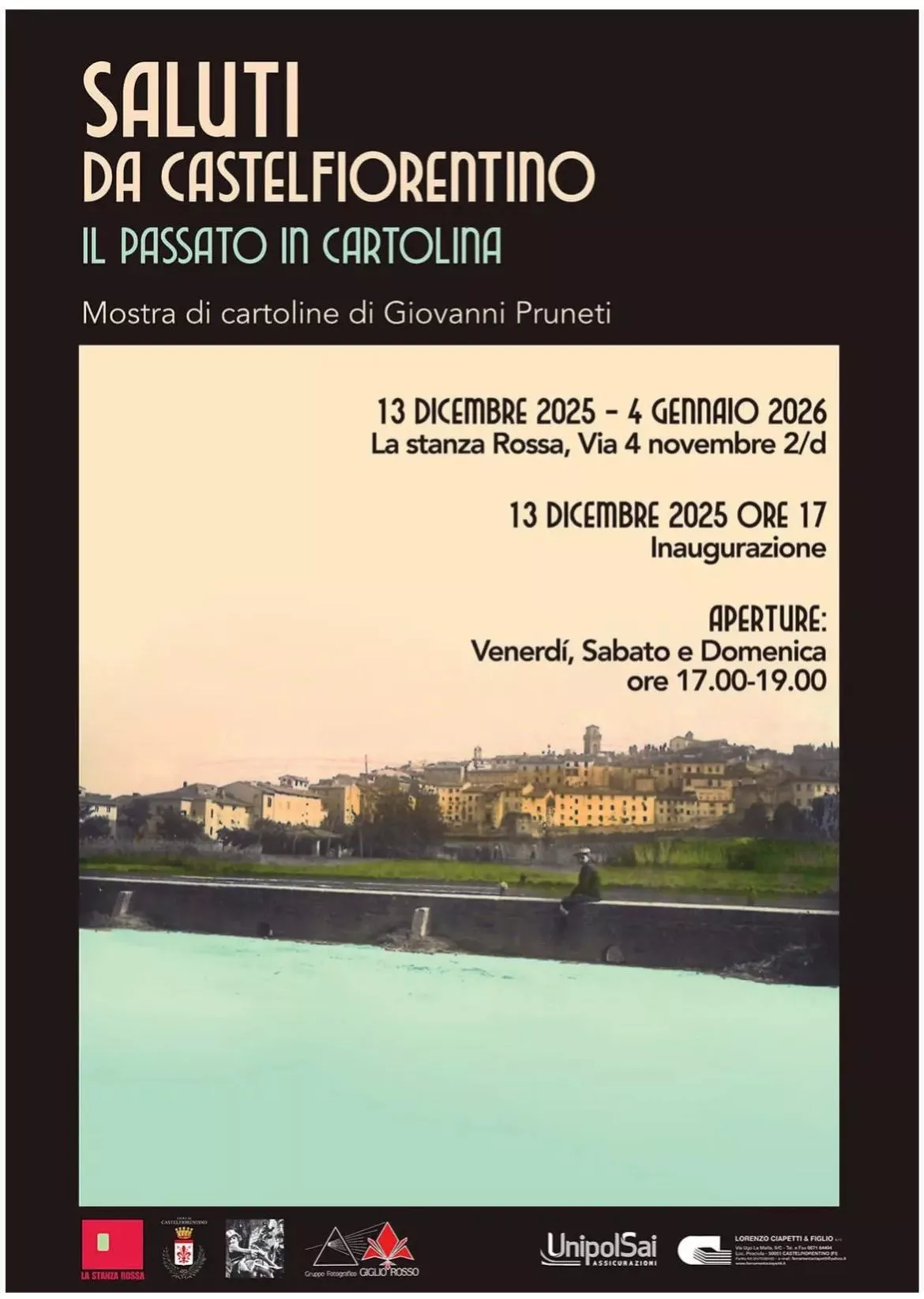 La mostra "Saluti da Castelfiorentino" rimarrà aperta fino al 4 gennaio. Orario: venerdì, sabato, domenica ore 17.00-19.00