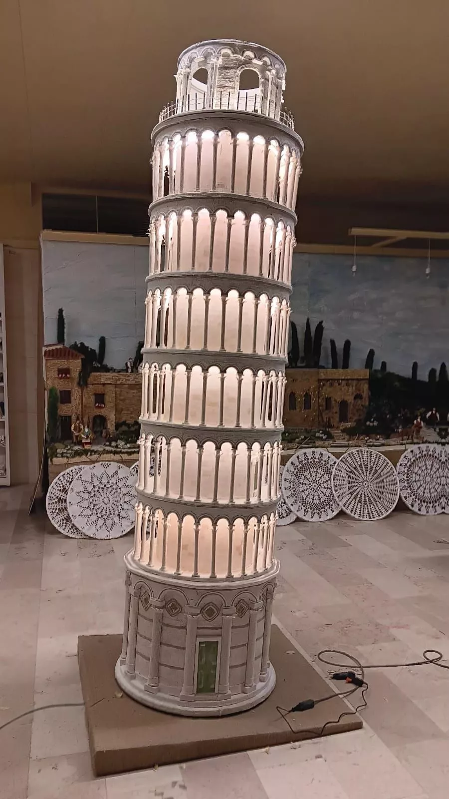 La torre di Pisa all'uncinetto, un capolavoro