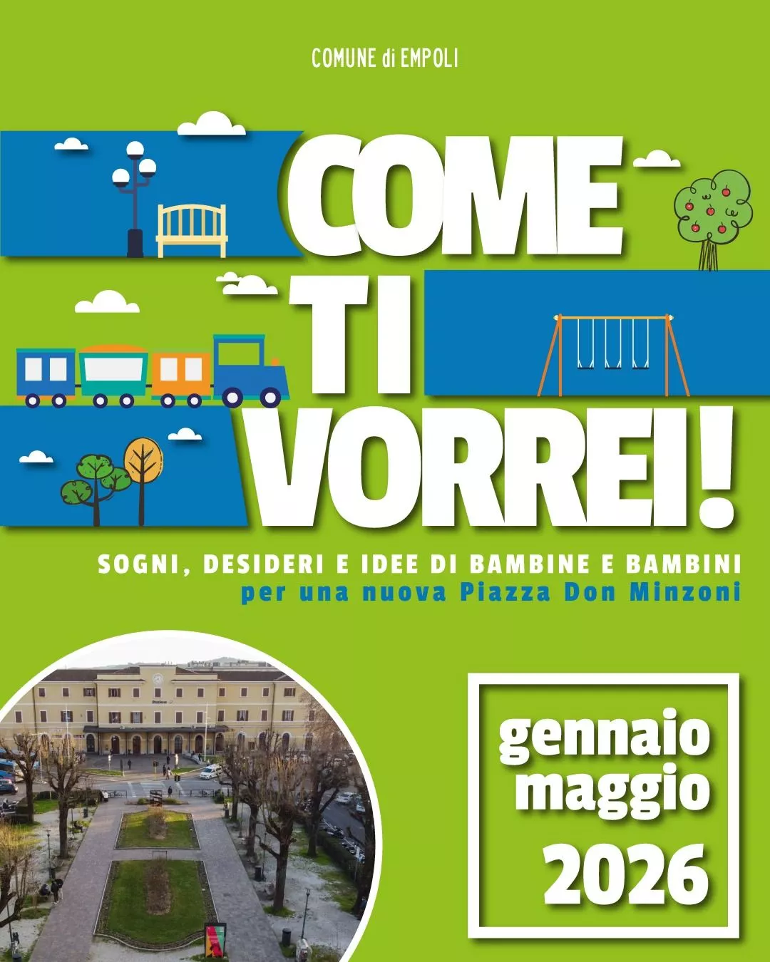 Il Comune di Empoli lancia un nuovo progetto di partecipazione per ripensare piazza Don Minzoni, la piazza antistante la stazione ferroviaria. Come ti vorrei! Sogni, desideri e idee delle bambine e dei bambini per una nuova Piazza Don Minzoni ha l'obiettivo di realizzare una base di progetto per ...