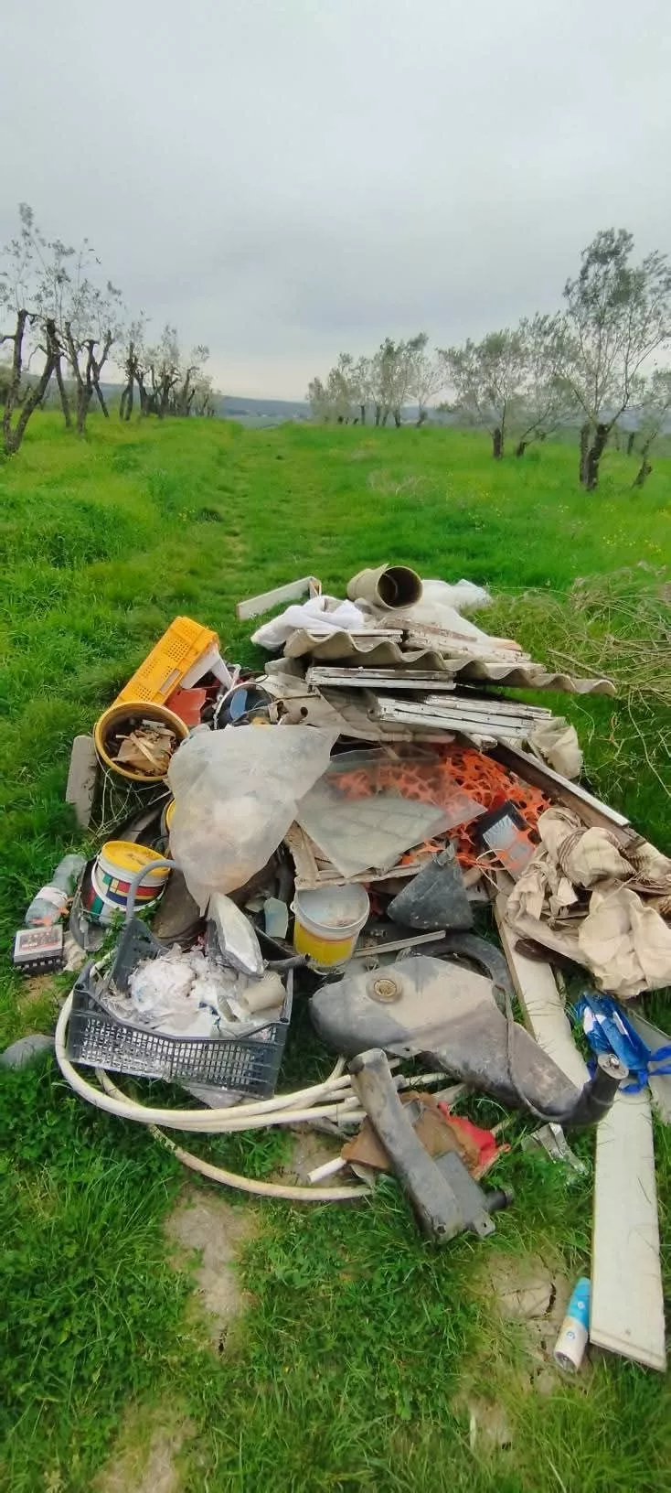 Eternit, calcinacci, batterie ed un serbatoio di auto nel verde di Sovigliana