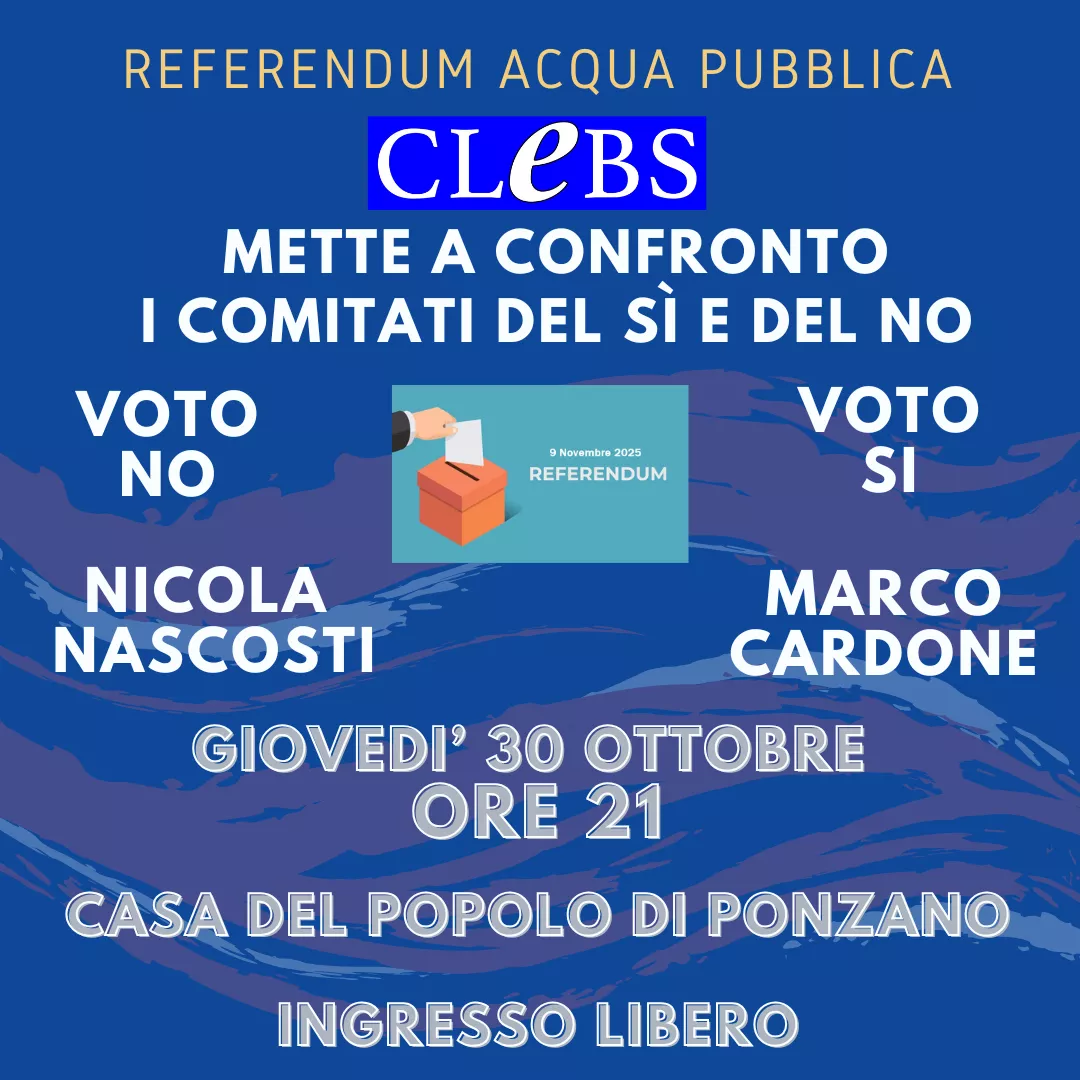 Intanto l'iter degli incontri del comitato prosegue. Domani sera alle 21.15 alla casa del Popolo del Pozzale saranno presenti il professor Alessandro Volpi e l'avvocata del forum toscano movimenti per l'acqua, Donella Bonciani (modera Giovanni Mennillo direttore di gonews) mentre giovedì sera alle 21 alla casa del popolo di Ponzano clebs metterà di fronte Marco Cardone e Nicola Nascosti, rispettivamente per il sì e per il no.