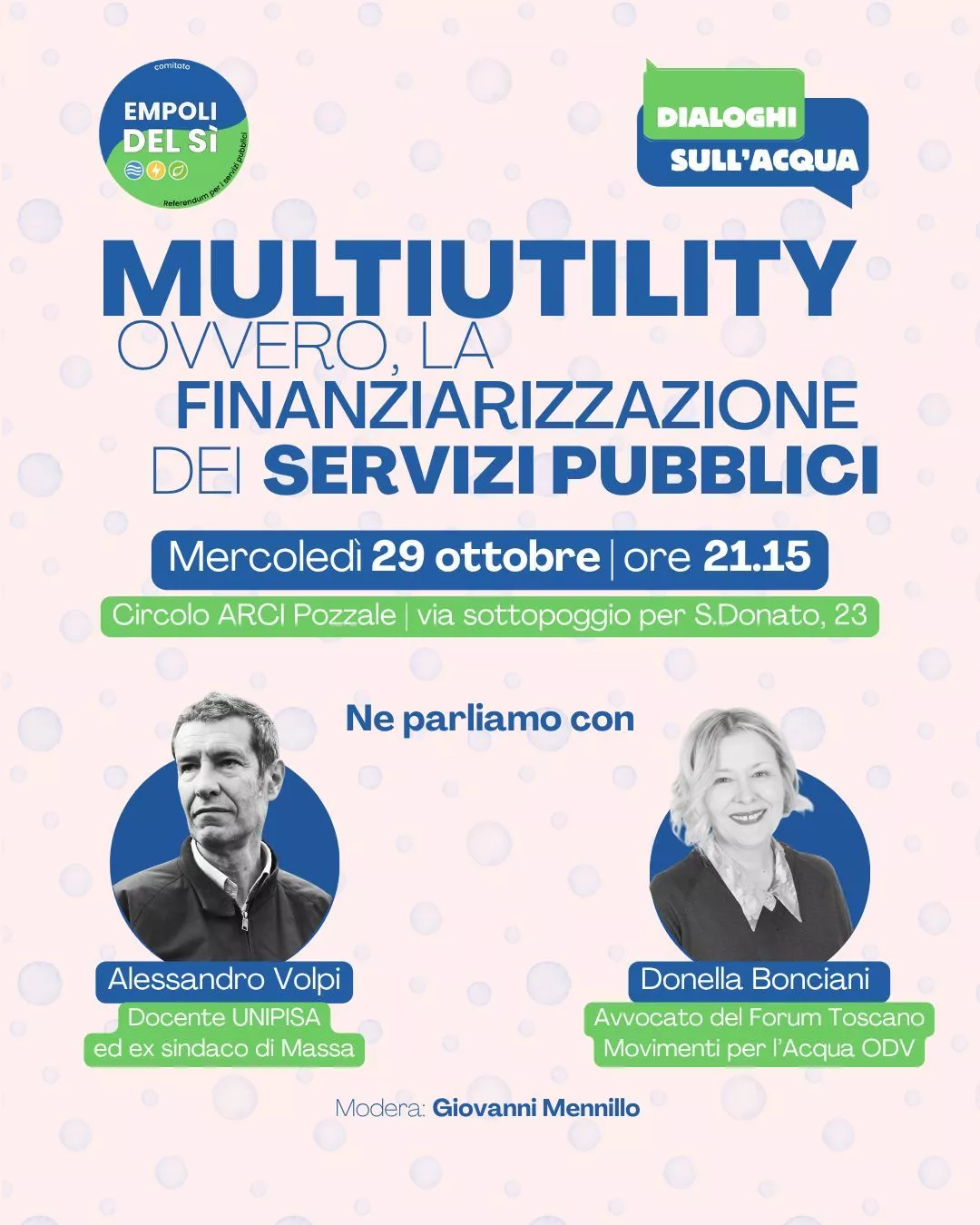 Filippo Torrigiani ha messo in evidenza un passaggio a suo dire importante: “non me la sento e trovo ingeneroso dover buttare addosso la croce di questa scelta, riferita all'operazione Multiutility, a questa nuova generazione di sindaci eletti da poco più di un anno. Molti di loro si sono trovati questo fardello a causa di scelte assunte dai loro predecessori". “Tuttavia adesso – ha aggiunto - anche in ordine alle prese di posizione del presidente Giani in merito alla necessità di una gestione totalmente pubblica della risorsa idrica e dunque fuori dal pericolo delle dinamiche affaristiche delle borse, vi sono tutte le condizioni, dando seguito anche all'esito referendario del 2011, per intraprendere la realizzazione a totale gestione pubblica dell'acqua”. Don Armando Zappolini ha analizzato la questione richiamando ai valori della Laudato Si, l'enciclica del Santo Padre Francesco sulla cura della casa comune, e spiegando che, proprio da quanto si legge lì, il bene più importante per la vita su questo pianeta, ovvero l'acqua, non può sottostare alla logica del profitto. Un passaggio a cui ha accennato anche Varis Rossi che ha sempre sostenuto questa battaglia e che ha illustrato i motivi per i quali, a suo dire, la scelta non può che essere per il sì.