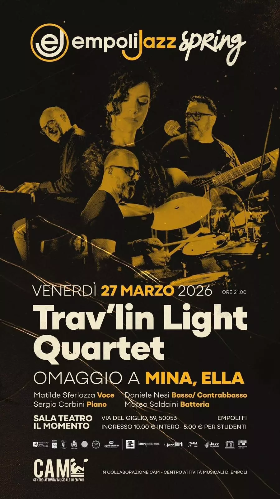 marzo alle 21 con il Trav'lin Light Quartet, citazione del brano cantato da Billie Holiday.I capisaldi di questo concerto sono innanzitutto Mina, un'artista libera, audace e anticonformista dotata di una voce potente simbolo indiscusso della musica italiana. Dall'altra parte troviamo Ella Fitzgerald, soprannominata 'Queen Of jazz' nota per il suo fraseggio scat e la sua influenza come cantante jazz. Le due artiste hanno fatto la storia entrando nei cuori delle persone.