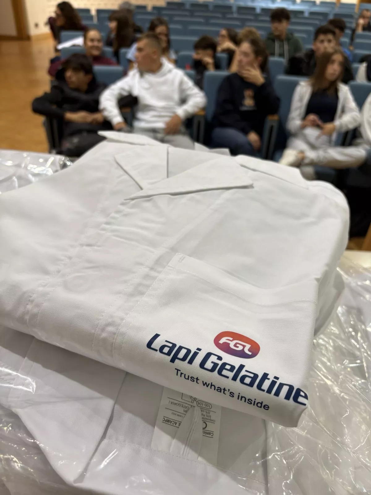 La consegna dei 50 camici si è svolta nell'Auditorium dell'Istituto, alla presenza del prof. Roberto Finocchi, vicepreside della scuola, di alcuni docenti, e per Lapi Gelatine, del direttore Fabio Da Lozzo, della responsabile marketing Sara Borchi e di Maria Vittoria Galeazzi, coordinatrice del Progetto Giovani Lapi Group. Un simbolo del legame tra scuola e mondo del lavoro Il camice, che accompagnerà gli studenti nelle attività laboratoriali durante l'intero ciclo di studi, porta il logo dell'azienda e rappresenta molto più di un semplice DPI: è un segno tangibile del legame tra scuola e impresa, tra presente e futuro, tra formazione e mondo del lavoro.