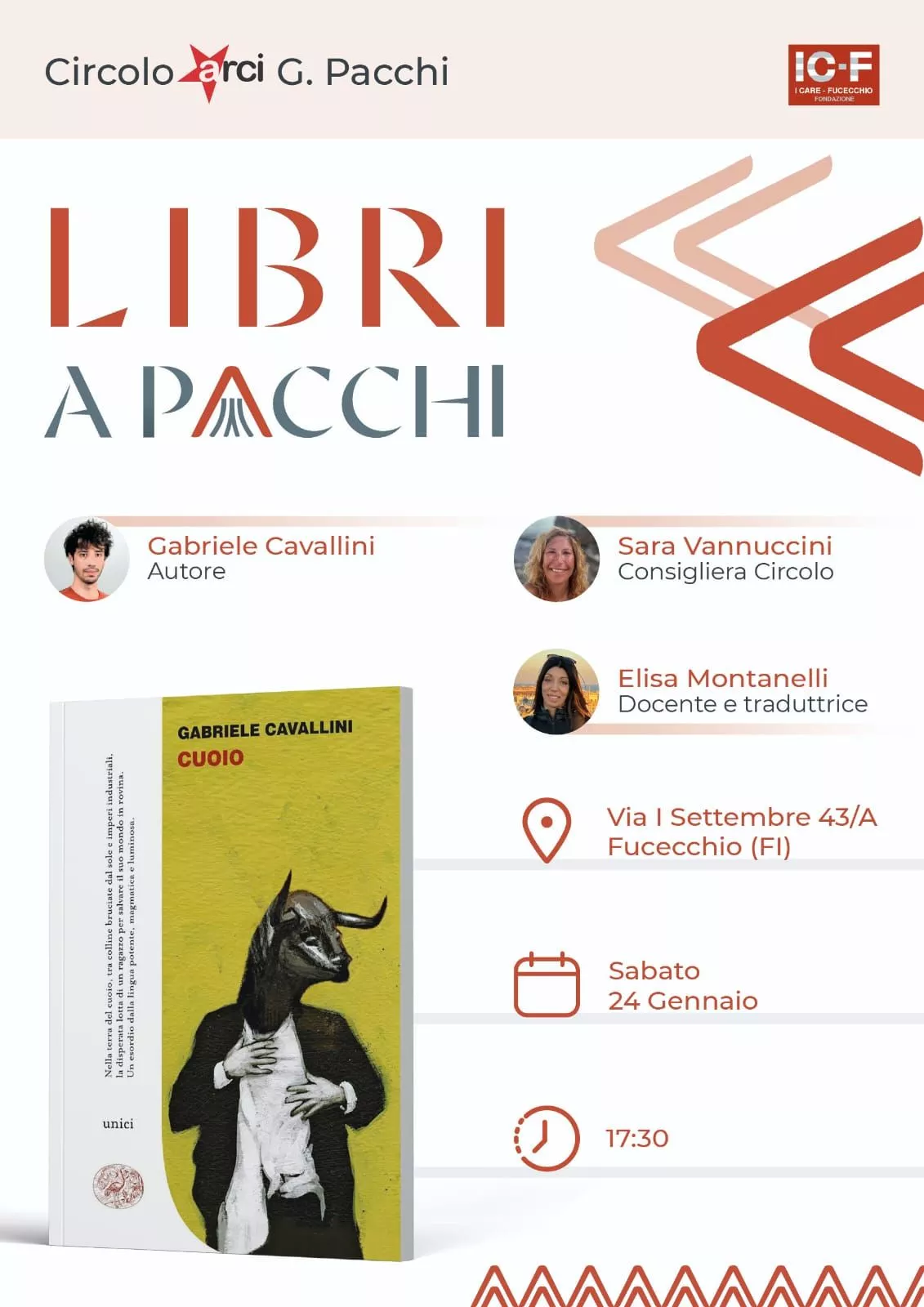 La rassegna letteraria "Libri a Pacchi" del Circolo Pacchi di Fucecchio continua con la stagione della narrativa, aprendosi con Cuoio di Gabriele Cavallini (Einaudi, 2025).