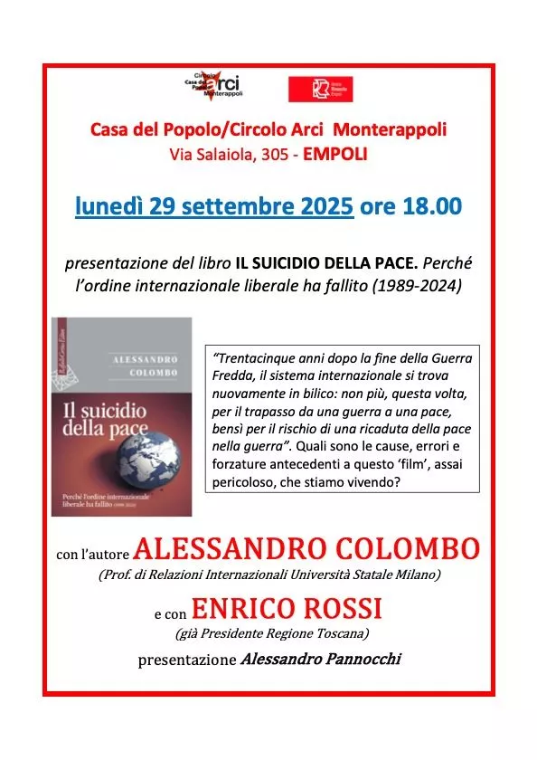 Lunedi prossimo, 29 settembre, alle ore 18, una nuova iniziativa della Casa del Popolo-Circolo ARCI Monterappoli (Empoli) in collaborazione con Libreria Rinascita, Empoli.