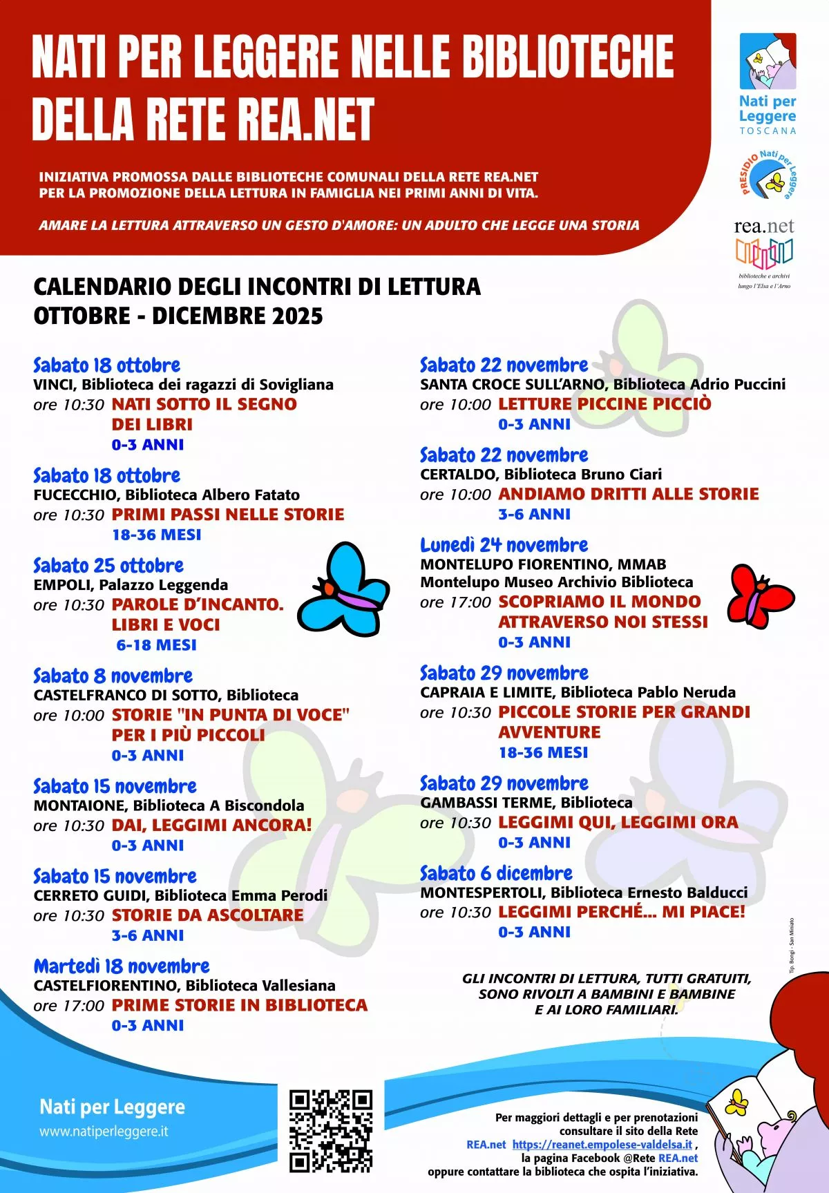 Le biblioteche comunali della Rete REA.net rafforzano il loro impegno nella promozione della lettura ad alta voce fin dalla più tenera età aderendo al programma nazionale Nati per Leggere (NpL), che da oltre vent'anni diffonde l'importanza della lettura in famiglia nei primi anni di vita.